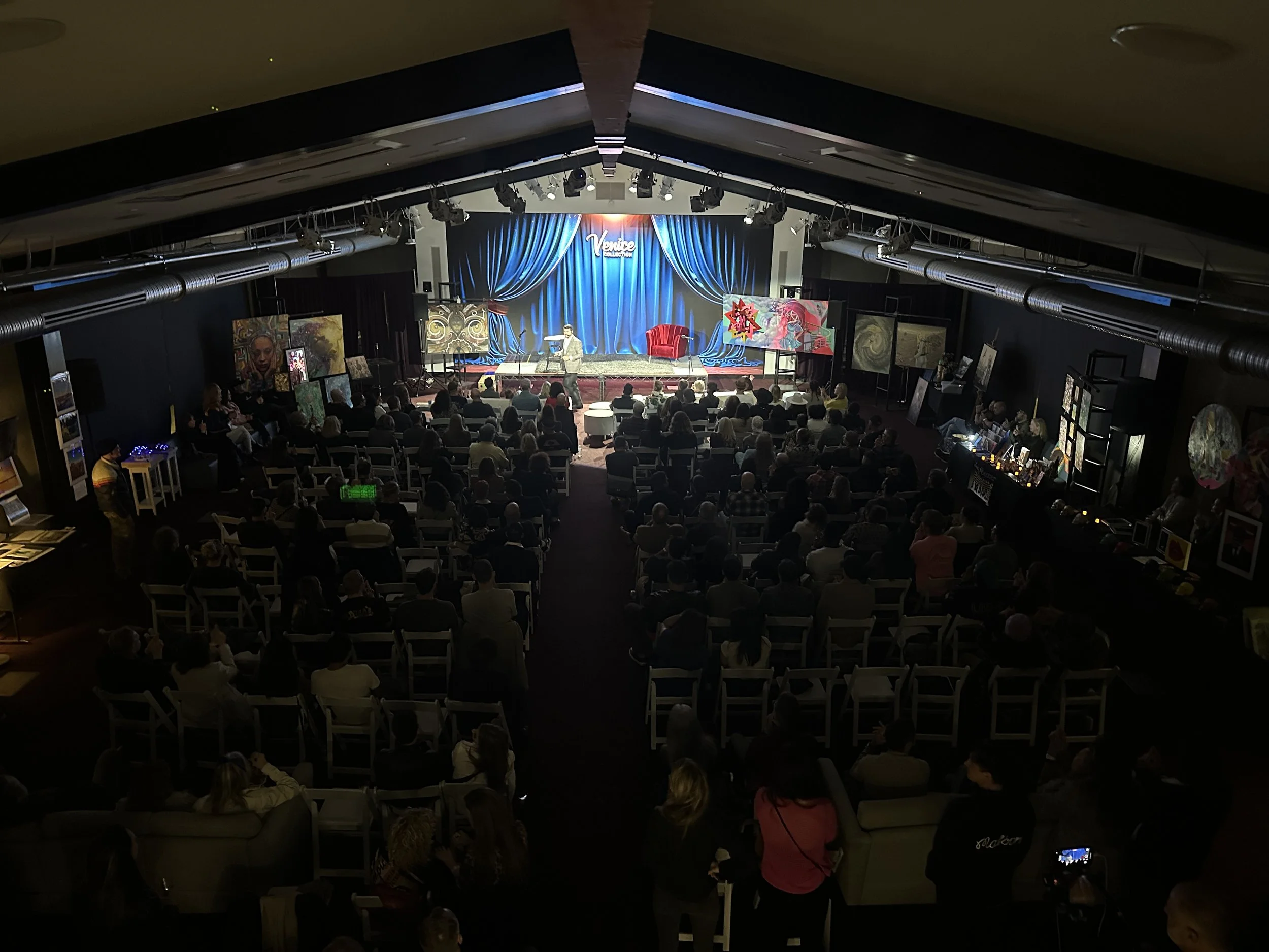 Magician Jackson Ridd kicked off the night with a mind-blowing mentalist set, closing with surprise giveaways from some of our local sponsors. Ten standout artists showcased and sold their work, while roaming magicians Al Naz and Michael Campion kept guests on their toes with close-up illusions before and after the show.